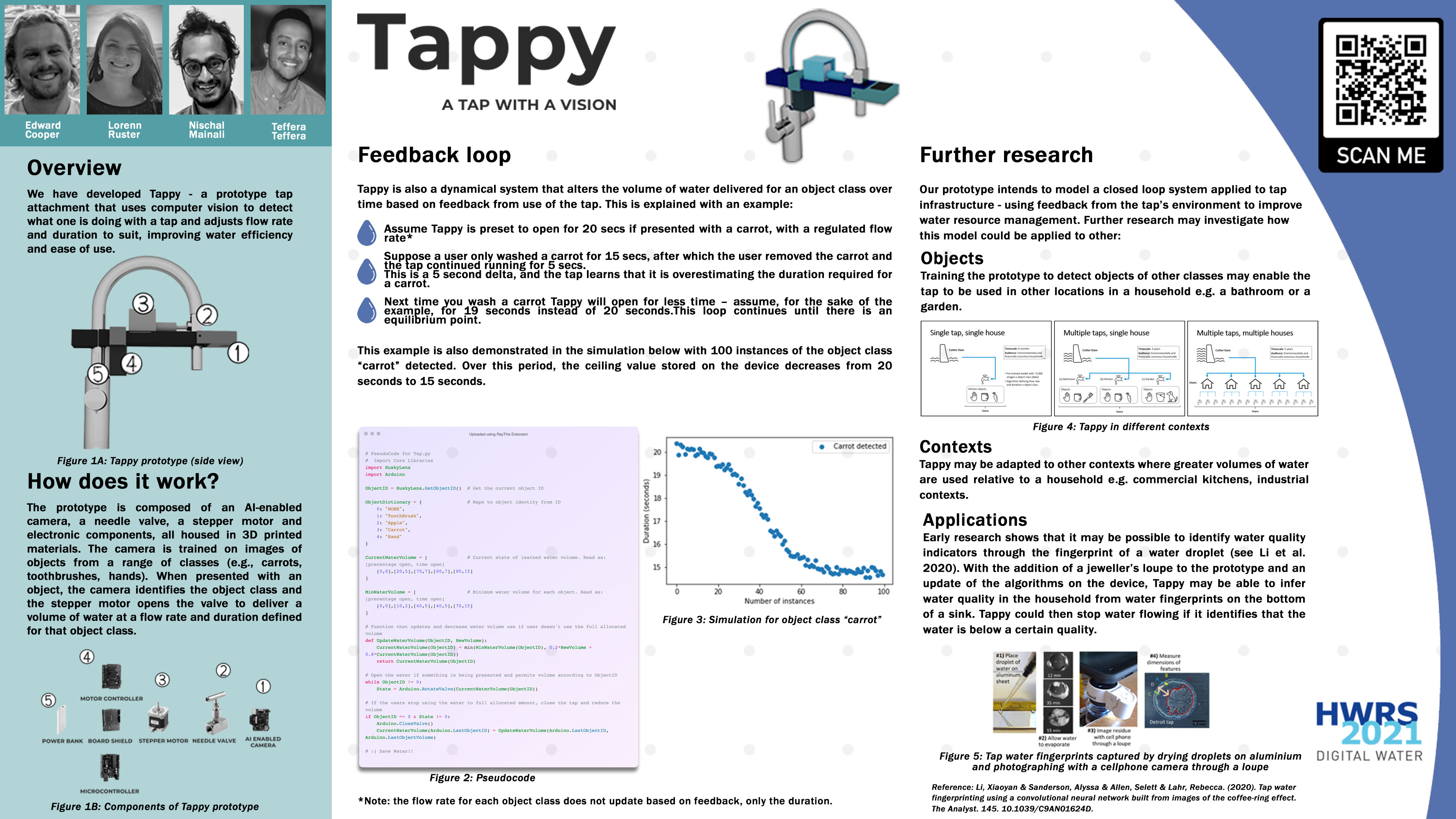 A smart tap that uses computer vision to detect what you are doing with a tap and adjusts flow rate and duration to suit, improving water efficiency.